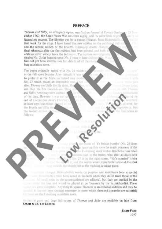 Digital Sheet Music for Thomas and Sally - Piano Reduction by Thomas Augustine Arne, Roger Fiske scored for Assorted Instruments; id:486401