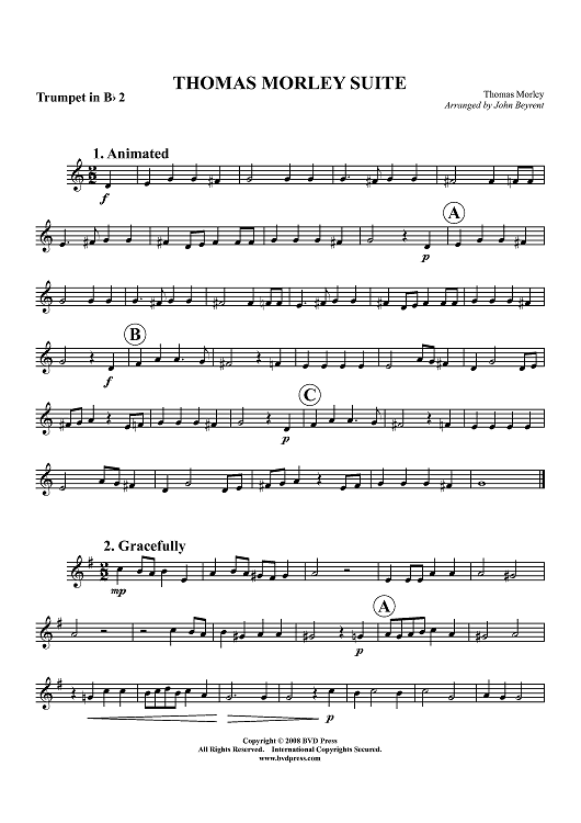 "Thomas Morley Suite - Trumpet 2 in Bb" Sheet Music by Thomas Morley