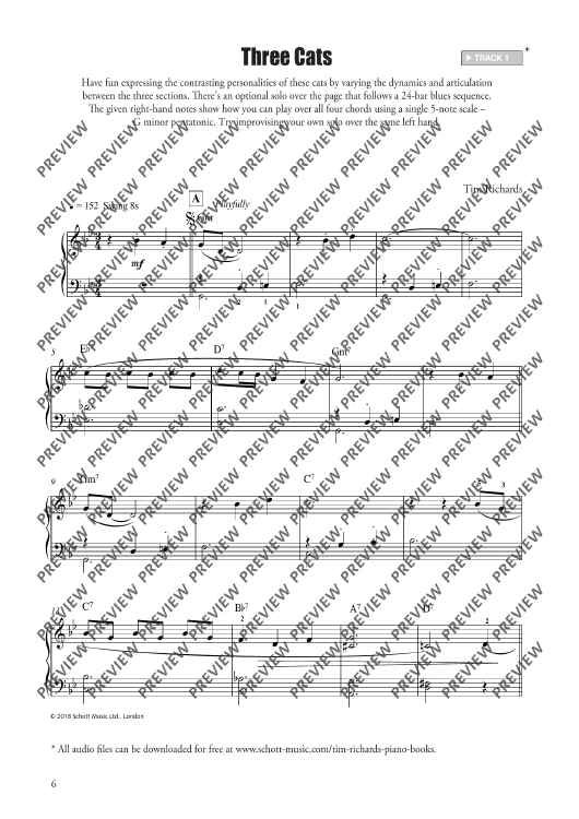 Digital Sheet Music for Three Cats by Tim Richards scored for Piano; id:499851