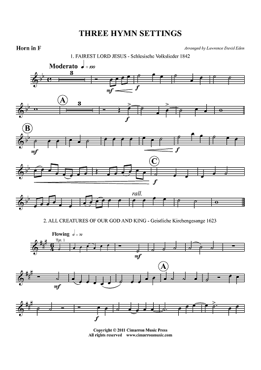 Digital Sheet Music for Three Hymn Settings - Horn in F by Various, Lawrence David Eden scored for Brass Quintet; id:425038