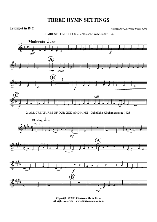 Digital Sheet Music for Three Hymn Settings - Trumpet 2 in Bb by Various, Lawrence David Eden scored for Brass Quintet; id:425037