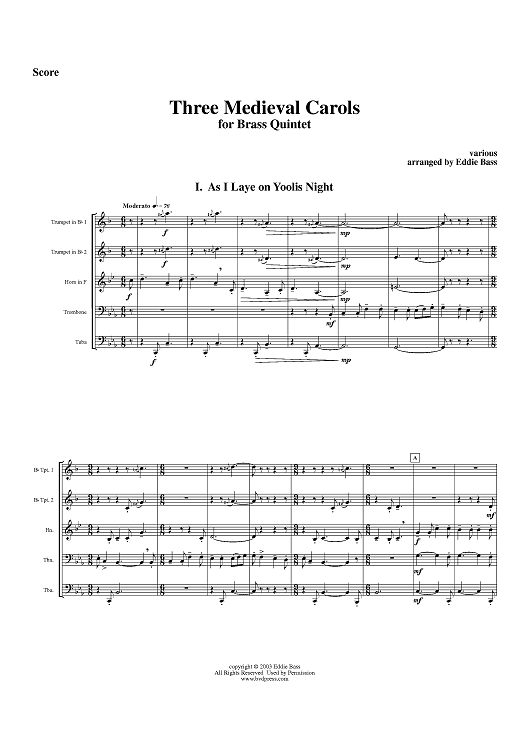 Digital Sheet Music for Three Medieval Carols - Score by Various, Eddie Bass scored for Brass Quintet; id:319426