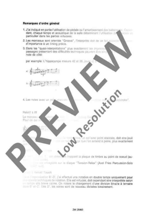 Drei jazzorientierte Spielstücke mit Liebe zur Musizierfreude. Die anspruchsvollen, mittelschweren bis schweren Stücke verlangen Wendigkeit und Einfühlungsvermögen in die charakteristische Rhythmisierung. Für Vibraphonisten/innen, die gerne auch mal Unterhaltungsstücke spielen, eine schöne Aufstockung des Repertoires.