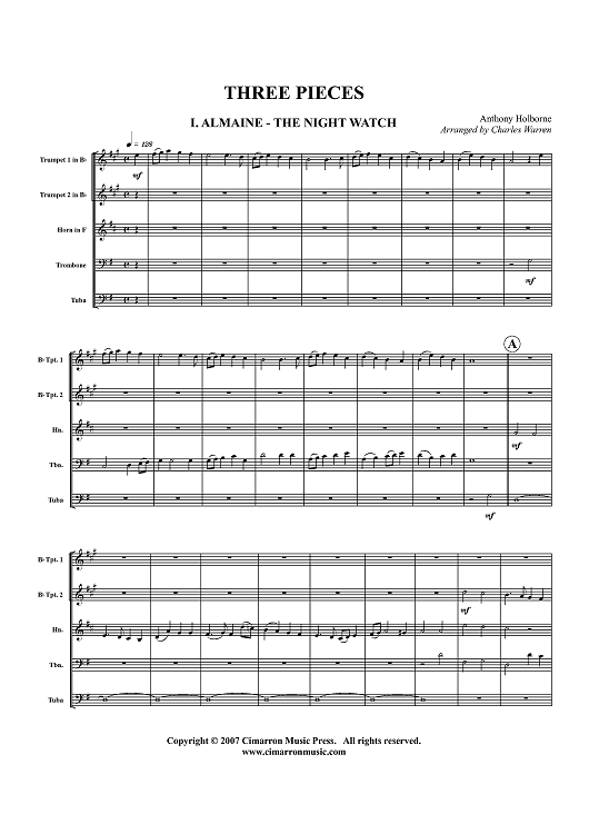 Digital Sheet Music for Three Pieces - Score by Anthony Holborne, Charles Warren scored for Brass Quintet; id:424361