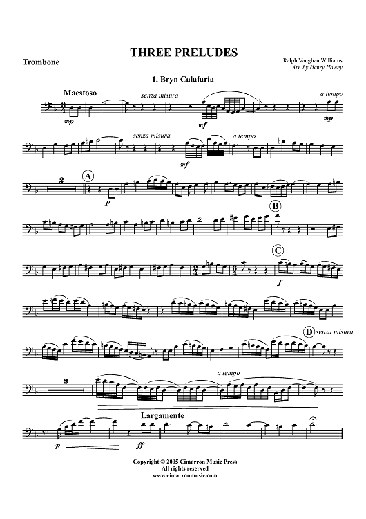 "Three Preludes - Trombone" Sheet Music by Ralph Vaughan Williams