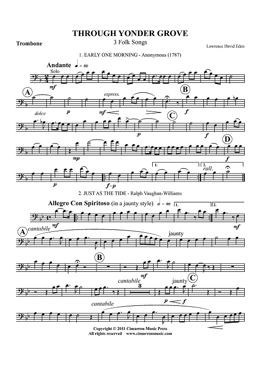 Digital Sheet Music for Through Yonder Grove - 3 Folk Songs - Trombone by Various, Lawrence David Eden scored for Brass Quintet; id:424992