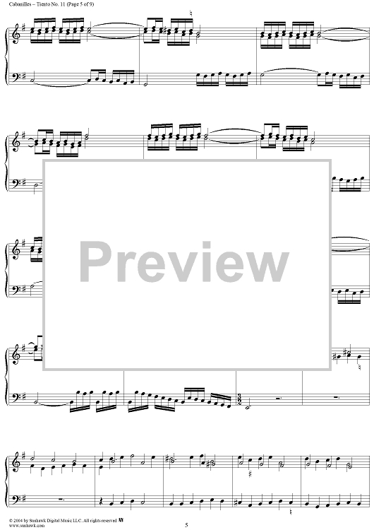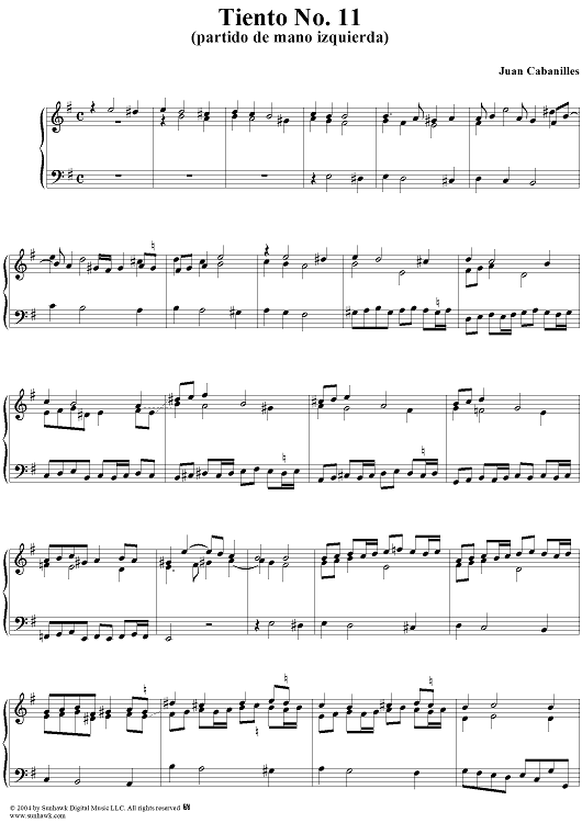 "Tiento XI (partido de mano izquierda)" Sheet Music by Juan Cabanilles