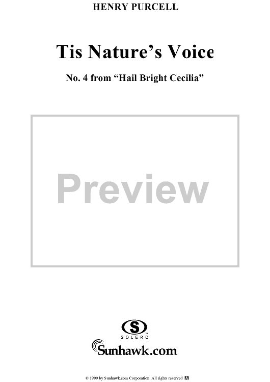 "Tis Nature's Voice , No. 4 from Hail Bright Cecilia" Sheet Music by Henry Purcell