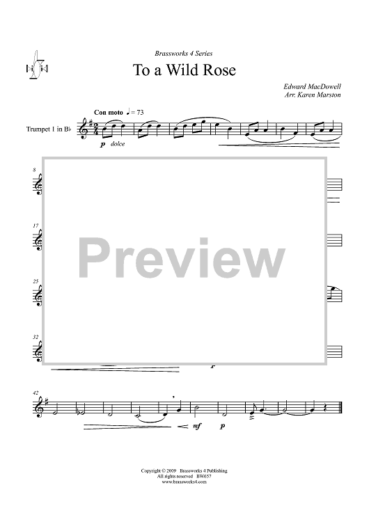Digital Sheet Music for To A Wild Rose - Trumpet 1 in B-flat by Karen Marston, Edward MacDowell scored for Brass Quartet; id:411301