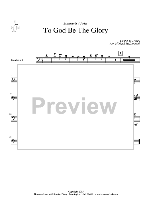 "To God Be The Glory - Trombone 1" Sheet Music by Fanny Crosby