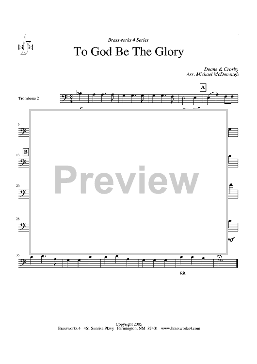 "To God Be The Glory - Trombone 2" Sheet Music by Fanny Crosby