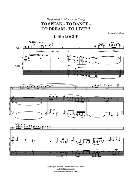 Digital Sheet Music for To Speak - To Dance - To Dream - To Live! - Piano Score by Barton Cummings scored for Euphonium/Piano; id:416604