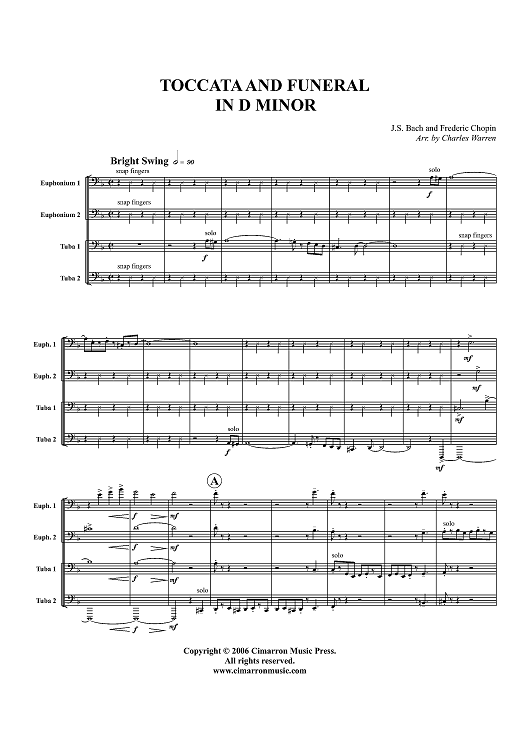 Digital Sheet Music for Toccata and Funeral in D Minor - Score by Frederic Chopin, Charles Warren, Johann Sebastian Bach scored for Tuba Quartet; id:356307