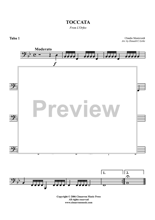 "Toccata (from L'Orfeo) - Tuba 1" Sheet Music by Claudio Monteverdi