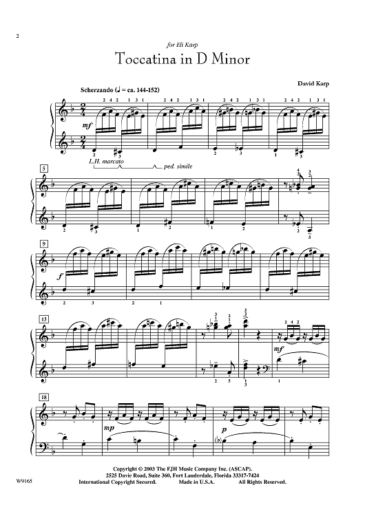Patterned, easy-to-learn piece allows your students to explore the fresh harmonies and left hand melodies of this wonderful toccatina. A splendid, classical composition, which offers contrasting dynamics and a good opportunity for expressive playing.