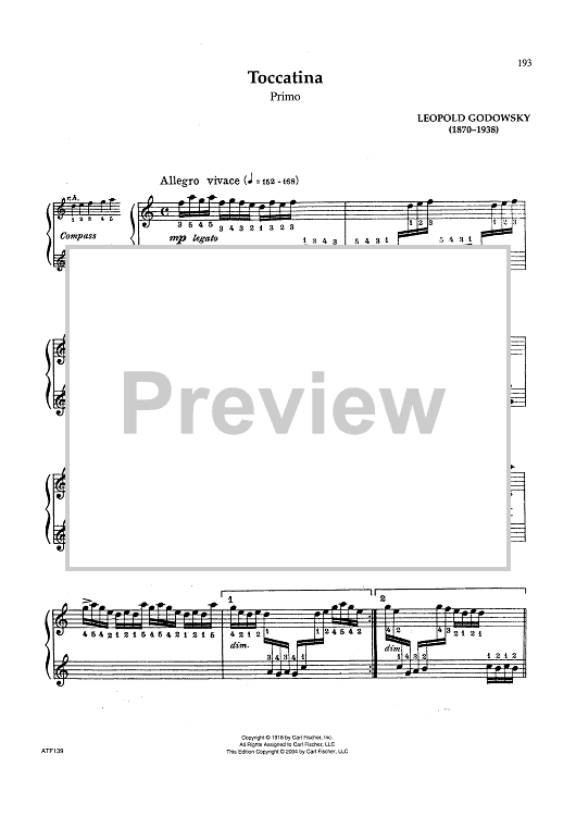 Digital Sheet Music for Toccatina by Leopold Godowsky scored for 2 Pianos, 4 Hands; id:439608