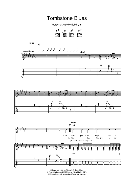 "Tombstone Blues" Sheet Music by Bob Dylan