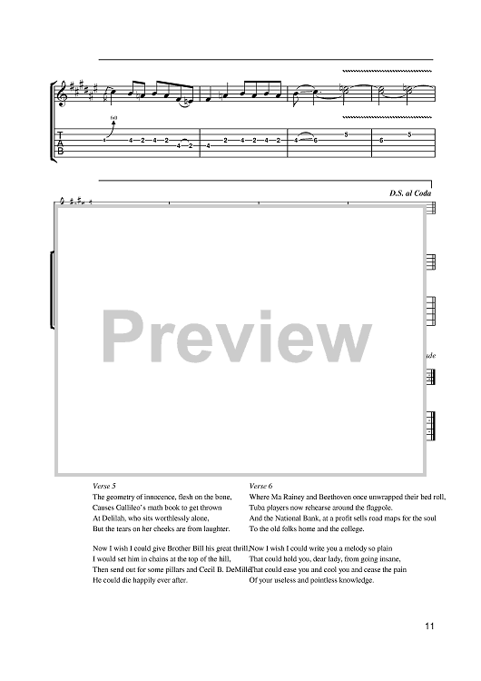 Digital Sheet Music for Tombstone Blues by Bob Dylan scored for Guitar Tab; id:401174