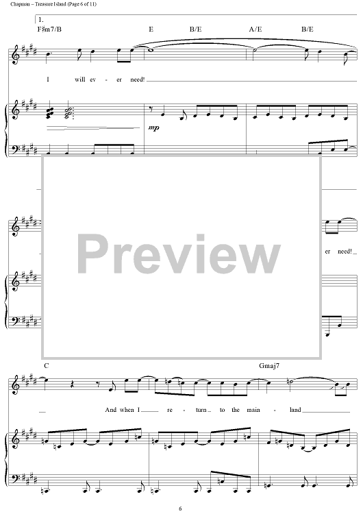 Digital Sheet Music for Treasure Island by Steven Curtis Chapman scored for Piano/Vocal/Chords; id:115757