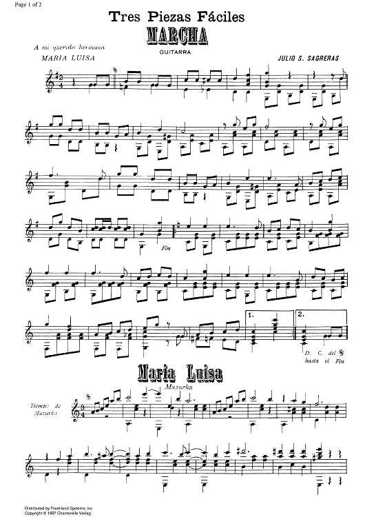 Digital Sheet Music for Tres Piezas Fáciles by Julio Sagreras scored for Guitar; id:327186