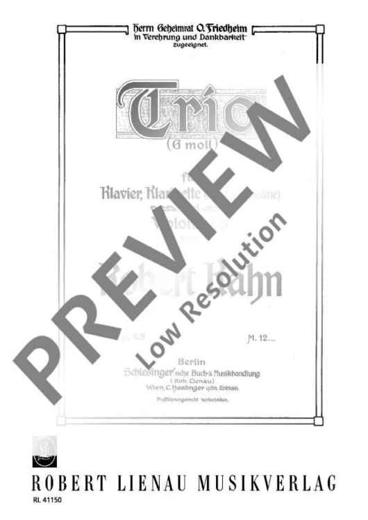 "Trio G minor in G minor" Sheet Music by Robert Kahn