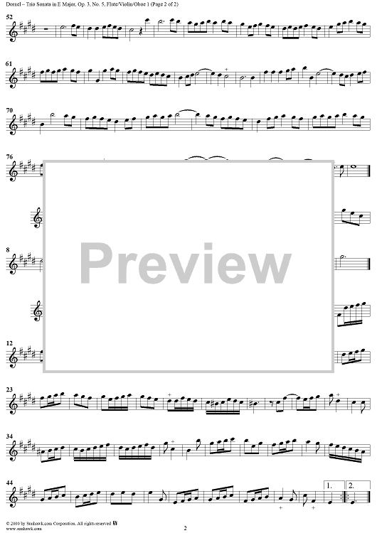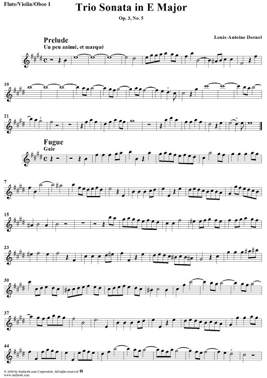 "Trio Sonata in E Major Op. 3, No. 5 - Flute/Violin/Oboe 1" Sheet Music by Louis-Antoine Dornel