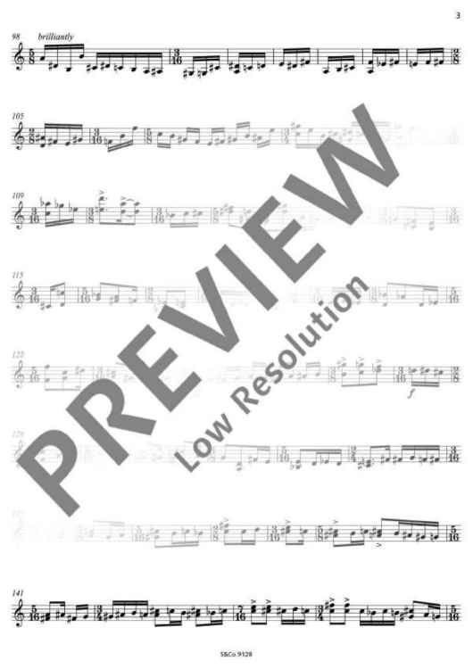 The original version of Triorchic Blues for solo piano was later transformed into this short virtuosic piece for solo violin. Lively and aggressive, the work explores the extremes of the instrument and would make an impressive opener or encore to a recital.