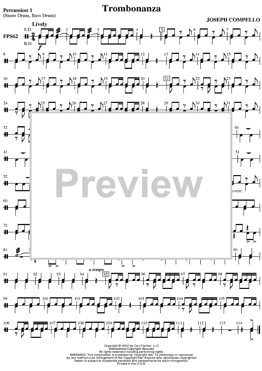 "Trombonanza - Percussion 1" Sheet Music by Joseph Compello