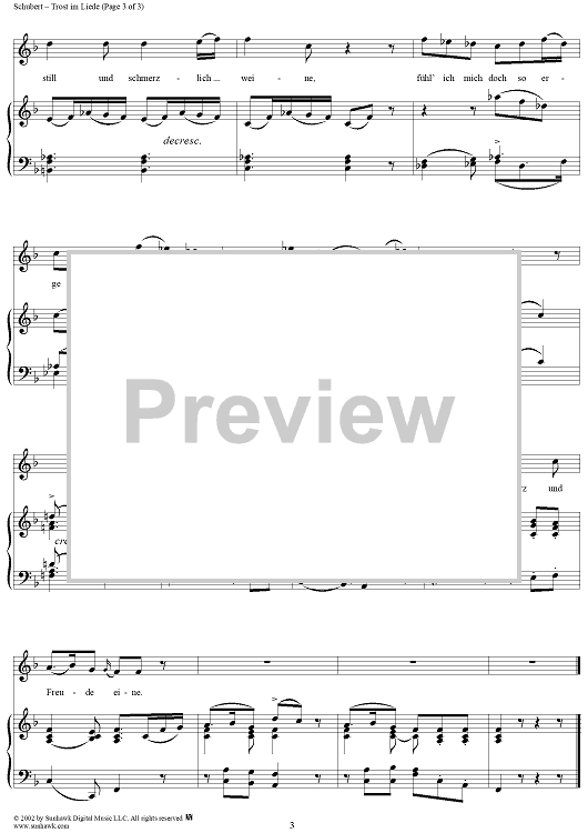 Digital Sheet Music for Trost im Liede, Op. 101, No. 3, D546 by Franz Schubert scored for Voice/Piano; id:256639