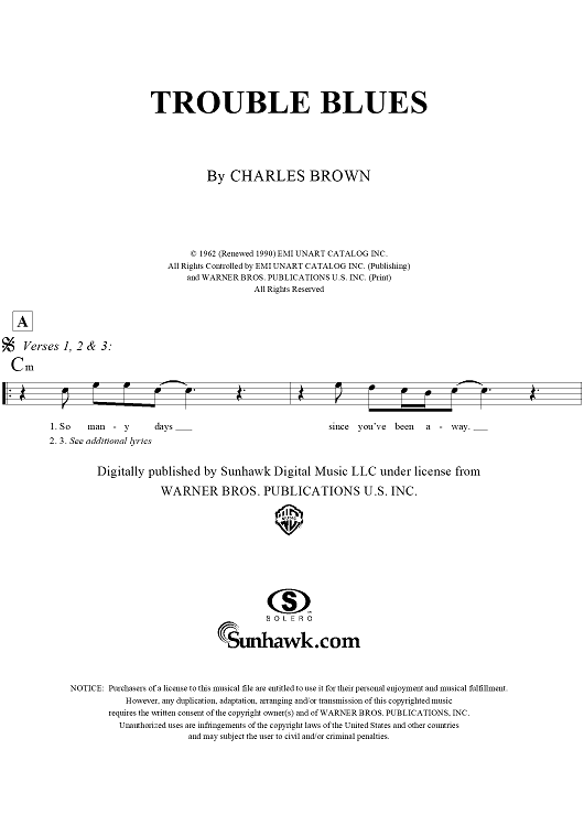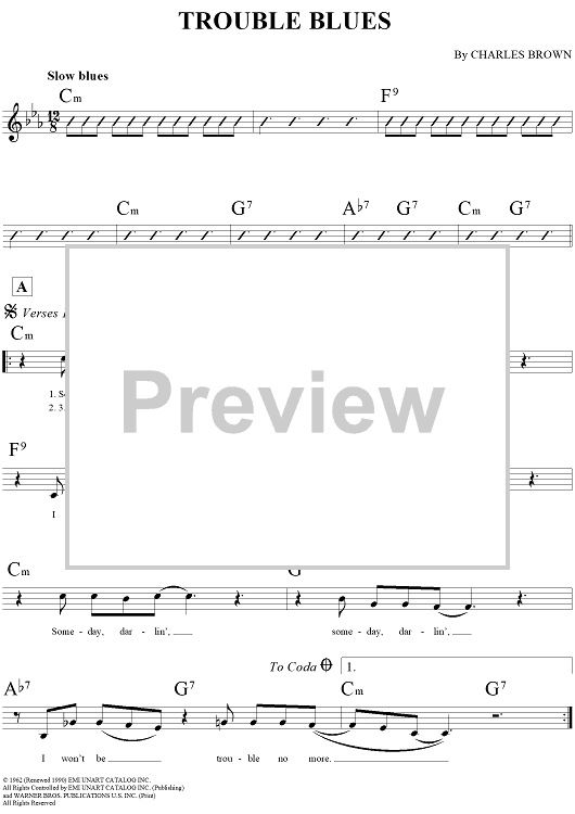 Digital Sheet Music for Trouble Blues by Charles Brown scored for Lead Sheet; id:291769