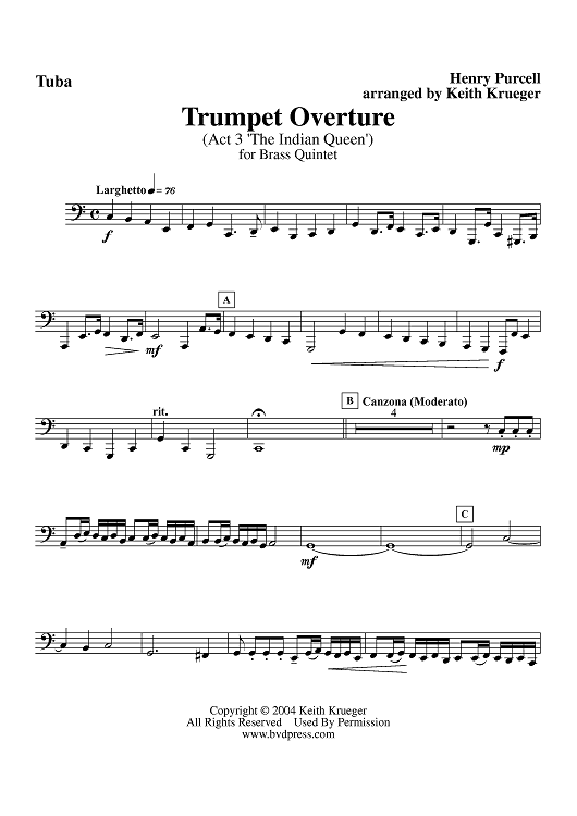 "Trumpet Overture from "The Indian Queen," Act 3 - Tuba" Sheet Music by Henry Purcell