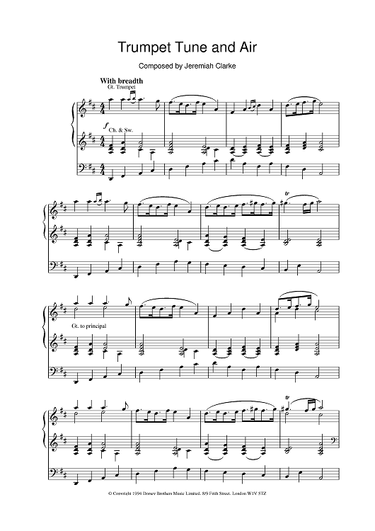 "Trumpet Tune and Air" Sheet Music by Jeremiah Clarke