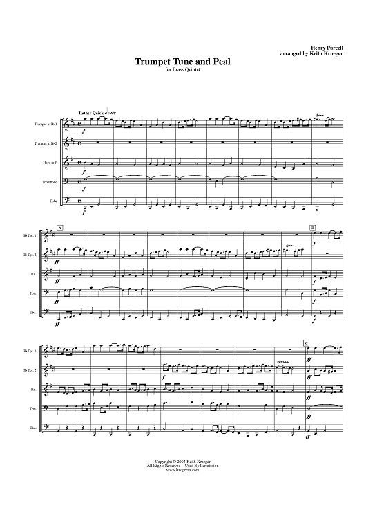 Digital Sheet Music for Trumpet Tune and Peal - Score by Henry Purcell, Keith Krueger scored for Brass Quintet; id:312441