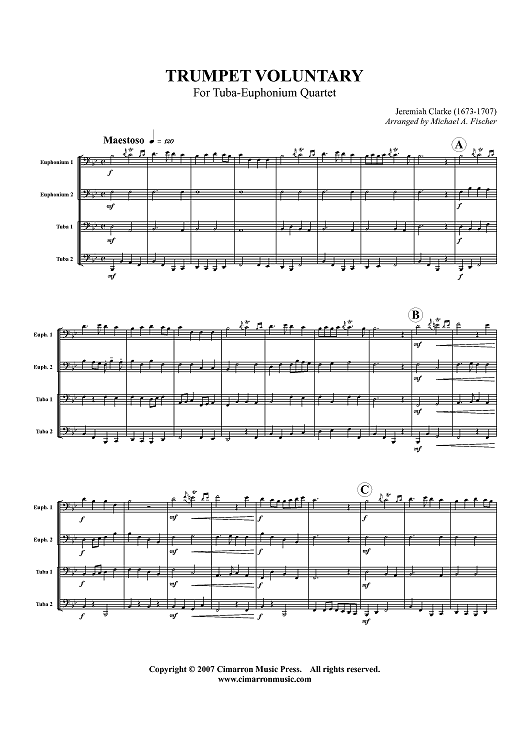 Digital Sheet Music for Trumpet Voluntary - For Tuba-Euphonium Quartet - Score by Jeremiah Clarke, Michael A. Fischer scored for Tuba Quartet; id:413522