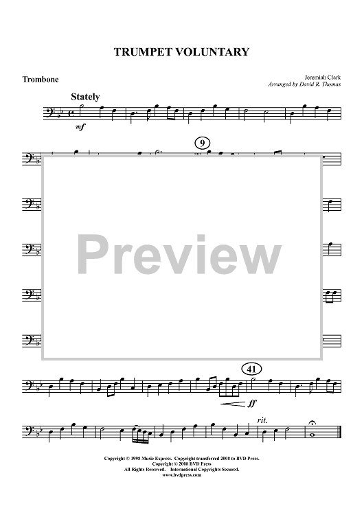 "Trumpet Voluntary - Trombone" Sheet Music by Jeremiah Clarke
