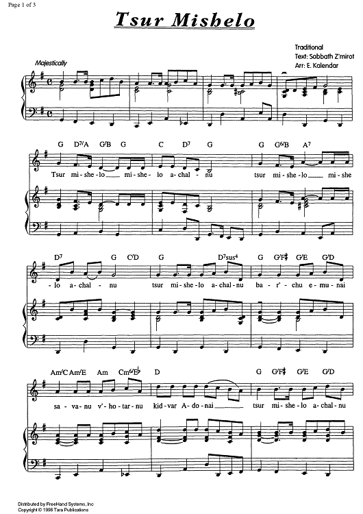 Digital Sheet Music for Tsur Mishelo by , Edward Kalendar, Traditional scored for Voice/Piano; id:343815
