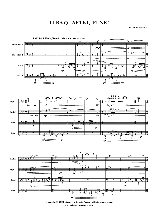 Digital Sheet Music for Tuba Quartet, "Funk" - Score by James Woodward scored for Tuba Quartet; id:415949