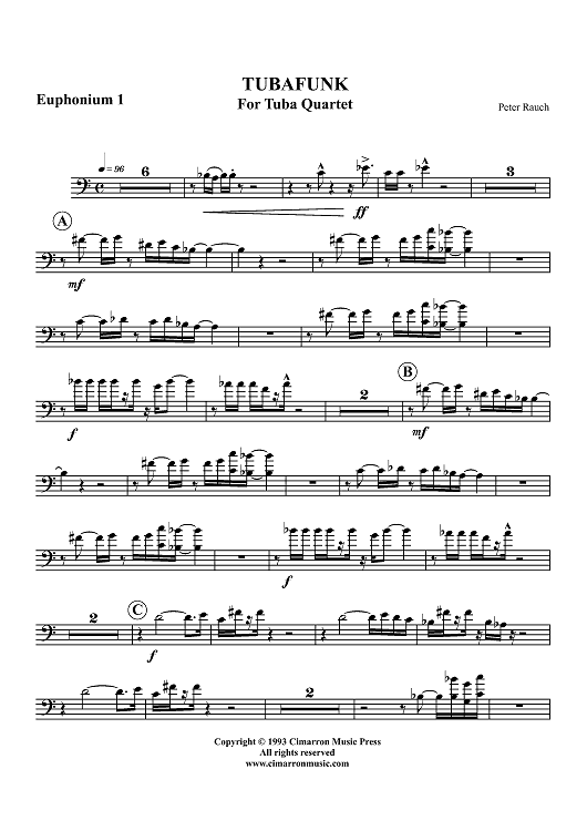 Digital Sheet Music for Tubafunk - Euphonium 1 BC/TC by Peter Rauch scored for Tuba Quartet; id:319646
