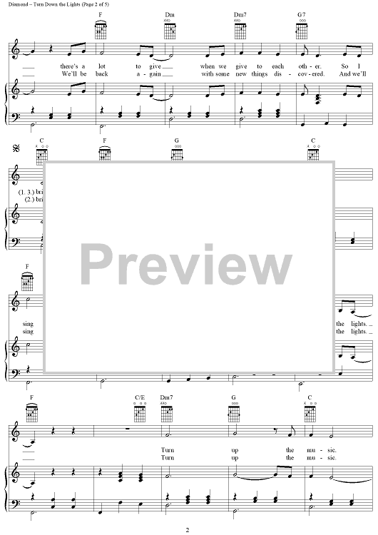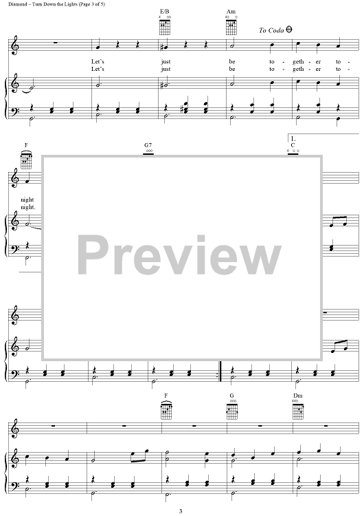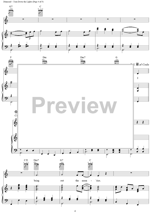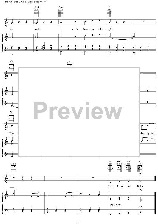 Digital Sheet Music for Turn Down The Lights by Neil Diamond scored for Piano/Vocal/Chords; id:367358
