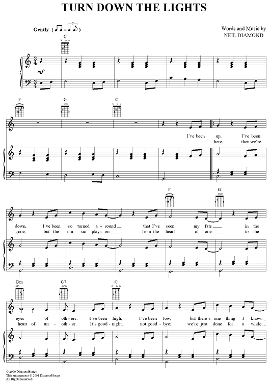 "Turn Down The Lights" Sheet Music by Neil Diamond