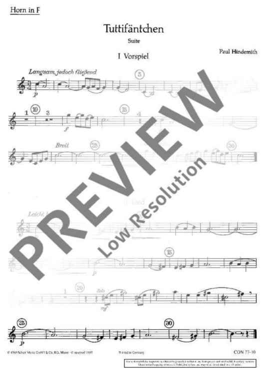 Digital Sheet Music for Tuttifäntchen - Set of Parts by Paul Hindemith scored for Small Orchestra; id:487749