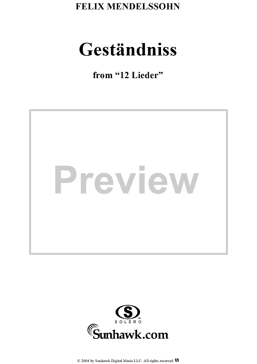 Digital Sheet Music for Twelve Lieder, Op. 9, No. 2: "An Avowal" (Geständniss) by Felix Mendelssohn scored for Voice/Piano; id:251888