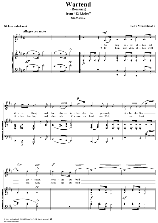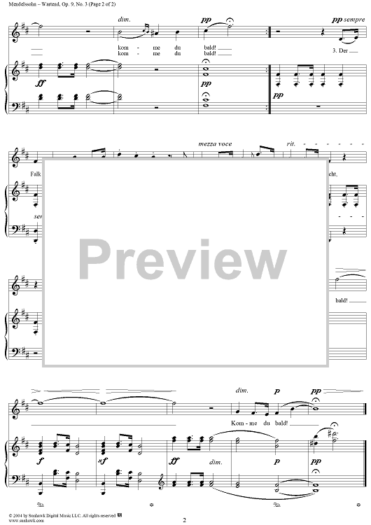 Digital Sheet Music for Twelve Lieder, Op. 9, No. 3: "Waiting" (Wartend) by Felix Mendelssohn scored for Voice/Piano; id:252105