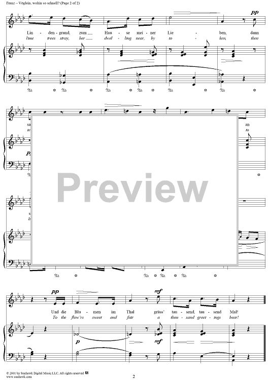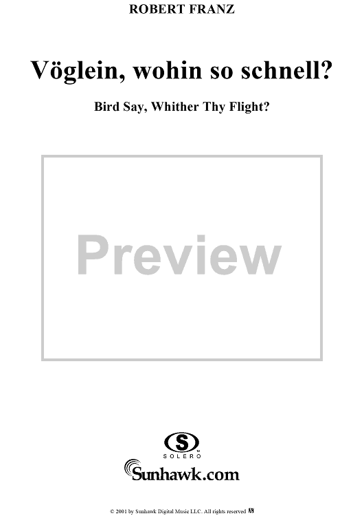 Digital Sheet Music for Twelve Songs, op. 1, no. 11: Bird Say, Whither Thy Flight? (Vöglein, wohin so schnell?) by Emanuel Geibel, Robert Franz scored for Voice/Piano; id:269264