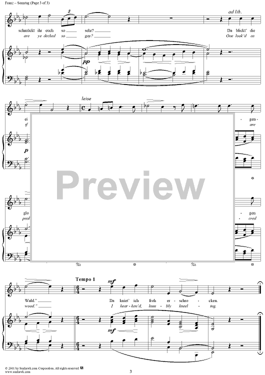Digital Sheet Music for Twelve Songs, op. 1, no. 7: Sunday (Sonntag) by Joseph von Eichendorff, Robert Franz scored for Voice/Piano; id:268903