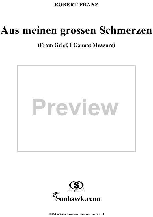 "Twelve Songs, op. 5, no. 1: From Grief, I Cannot Measure (Aus meinen grossen Schmerzen)" Sheet Music by Robert Franz