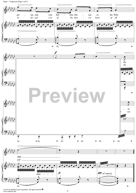 "Twelve Songs, op. 5, no. 10: Forebodings (Vergessen)" Sheet Music by Robert Franz