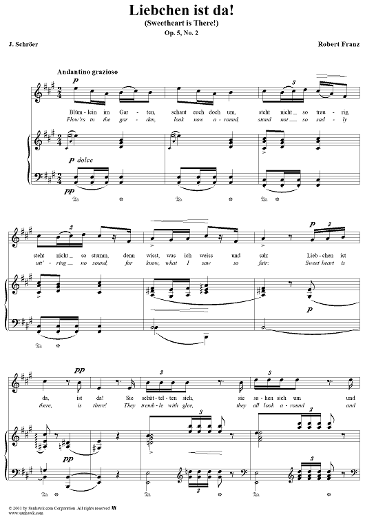 Digital Sheet Music for Twelve Songs, op. 5, no. 2: Sweetheart Is There! (Liebchen ist da!) by Robert Franz, J. Schroer scored for Voice/Piano; id:268904