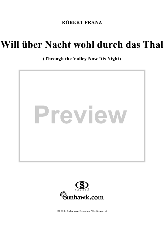 "Twelve Songs, op. 5, no. 4: Through the Valley Now 'tis Night (Will über Nacht wohl durch das Thal)" Sheet Music by Robert Franz