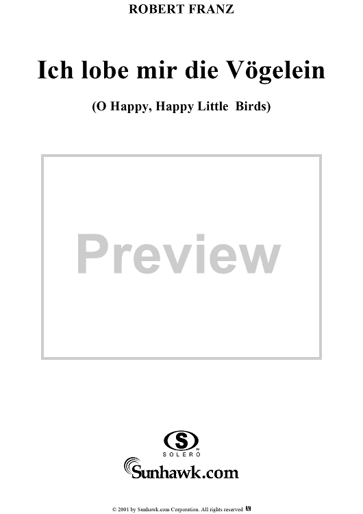 "Twelve Songs, op. 5, no. 8: O Happy, Happy Little Birds (Ich lobe mir die Vögelein)" Sheet Music by Robert Franz